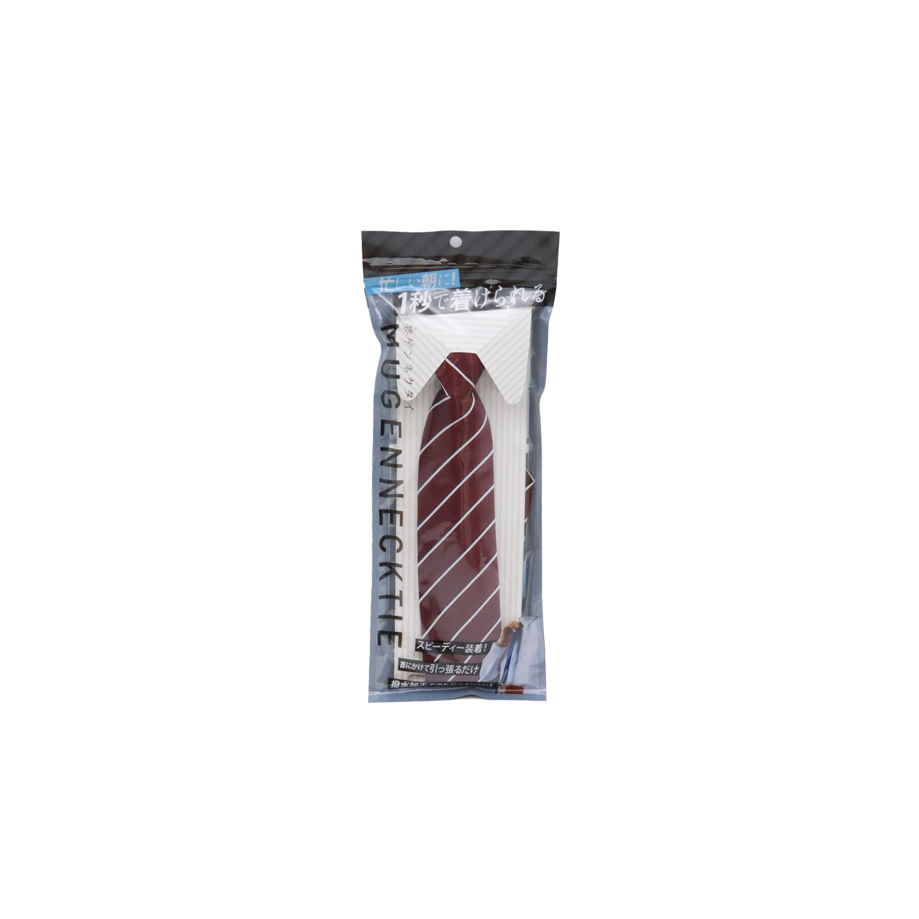 装着時間はわずか1秒!首にかけて紐をひっぱるだけで、誰でも簡単にネクタイを着けられます。